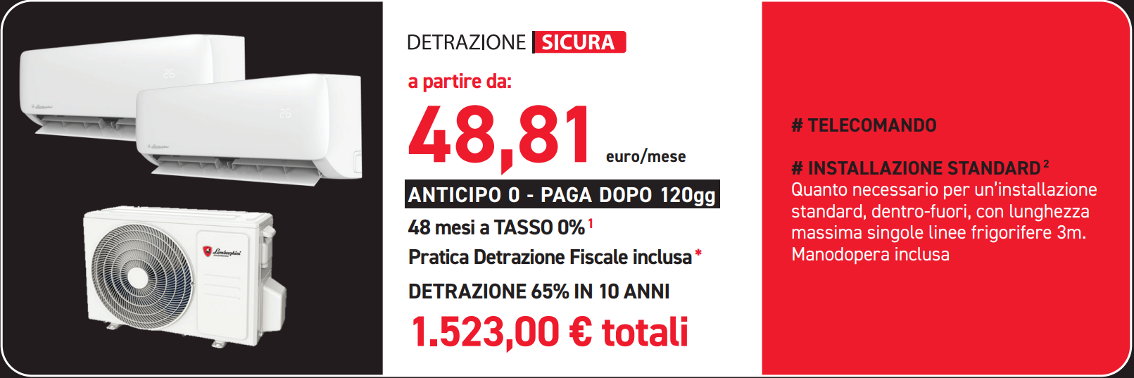 Verdeco Srl attraverso la piattaforma LAMBORGHINI CALORECLIMA BONUS verificherà la fattibilità e fornirà la documentazione necessaria per richiedere la detrazione, inclusa pratica Enea.