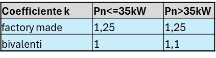 L'incentivo previsto per i sistemi ibridi factory made è il medesimo previsto per la pompa di calore, moltiplicato per un coefficiente k=1,25 indipendentemente dalla potenza del gruppo funzionale a condensazione (caldaia).