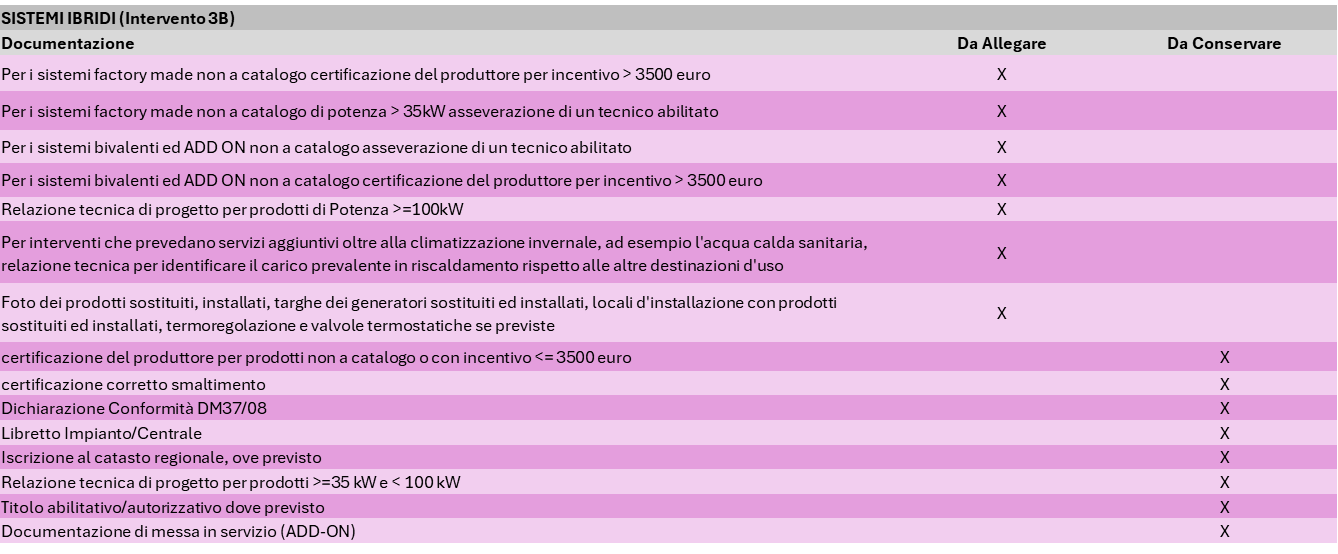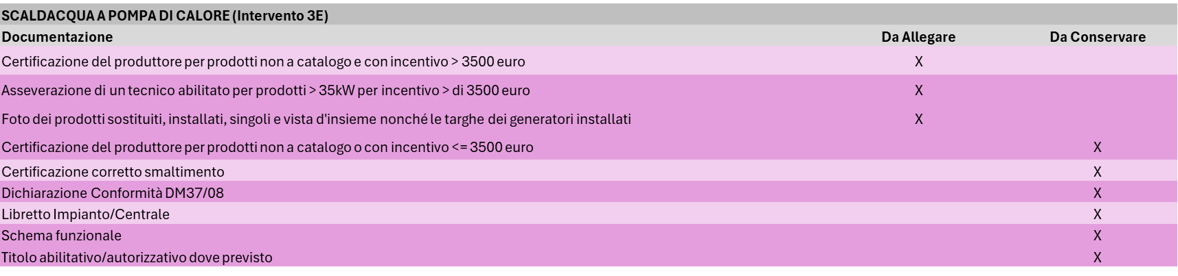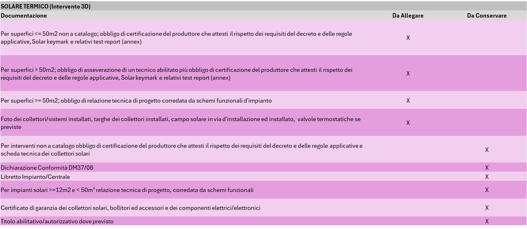 Di seguito tabellata un'estratto della documentazione, da allegare oda conservare, per la richiesta dell'incentivo. La tematica può essere approfondita consultando le regole applicative e relative FAQ del GSE