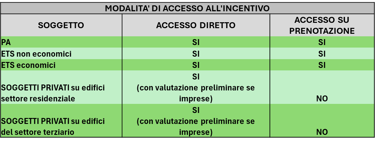 Il decreto Conto Termico 3.0 prevede 2 modalità di accesso agli incentivi, in funzione del Soggetto Ammesso: