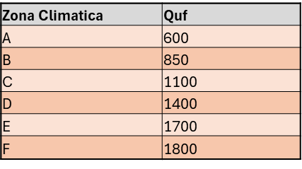 • Producibilità per impianti factory made in relazione all'area di apertura Aa con riferimento alla località Wuzburg ed al valore di carico giornaliero più vicino alla taglia di accumulo del sistema factory made > 400kWht/m2 anno