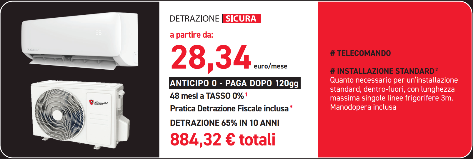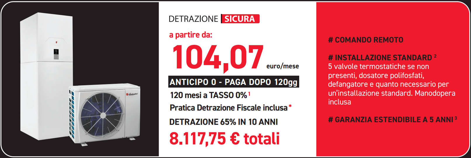 Verdeco Srl attraverso la piattaforma LAMBORGHINI CALORECLIMA BONUS verificherà la fattibilità e fornirà la documentazione necessaria per richiedere la detrazione, inclusa pratica Enea.