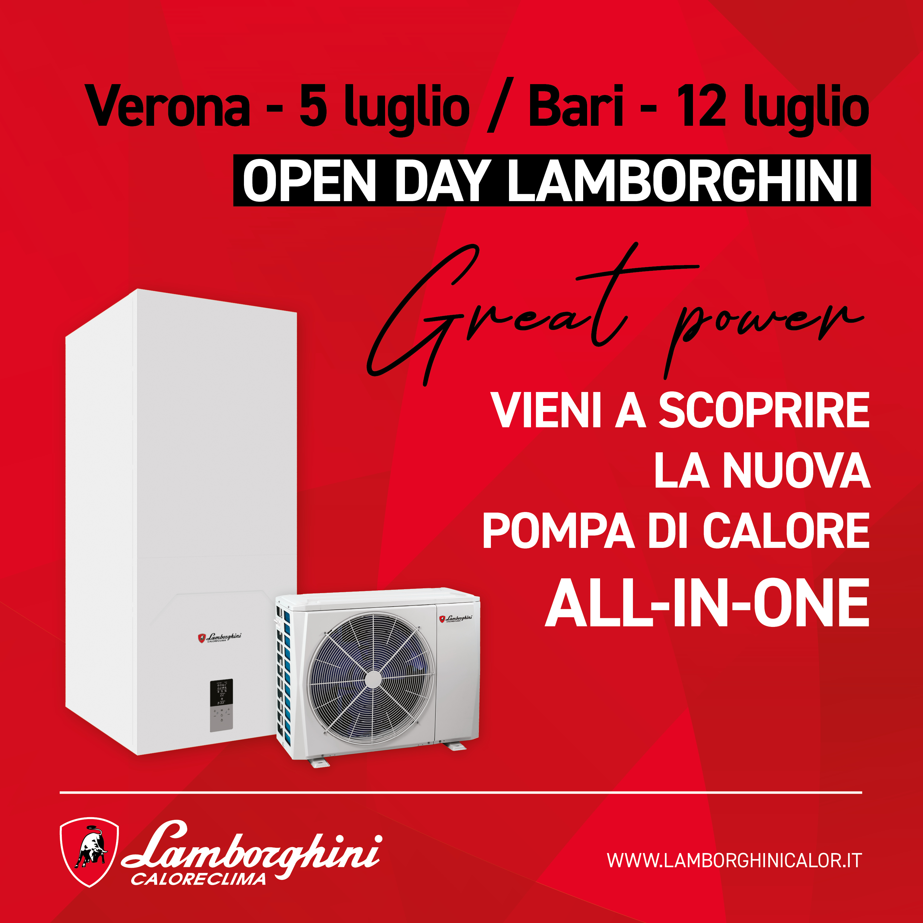 La pompa di calore splittata che integra la ricca gamma di Sistemi Full Electric Residenziali Lamborghini Caloreclima per soddisfare la richiesta di riscaldamento, raffrescamento e produzione di ACS grazie al suo accumulo integrato di 100 litri.