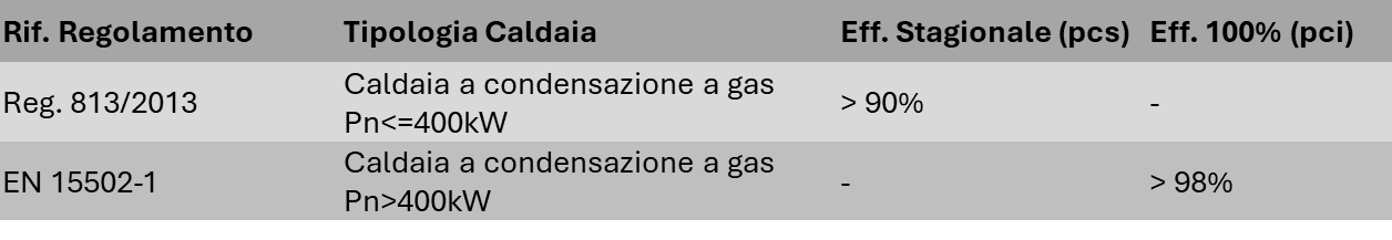 Requisiti prestazionali minimi Gruppo funzionale a condensazione (tab. 6 allegato 1 del decreto)