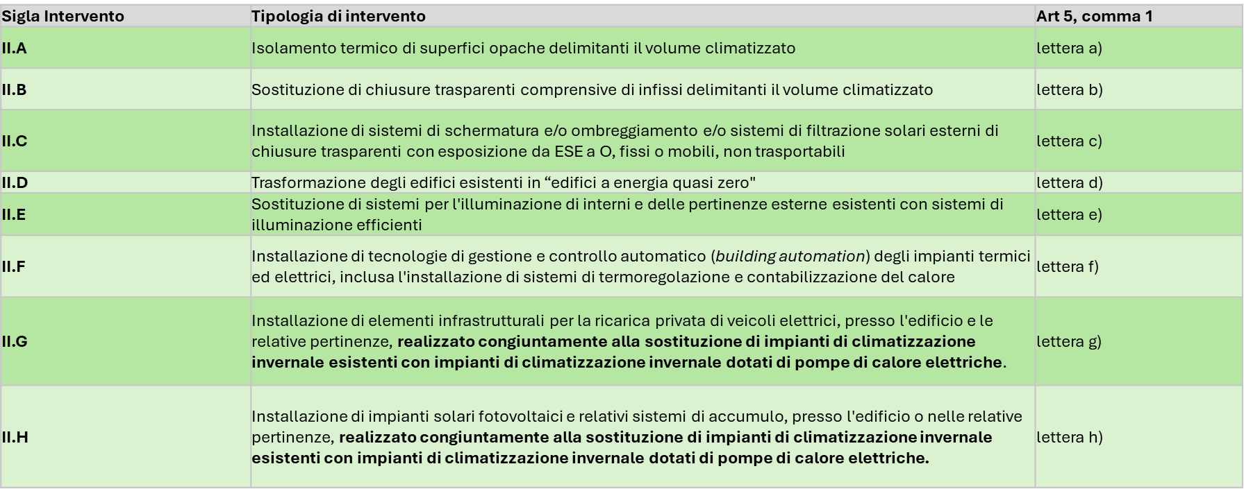 nota: Per i Soggetti Privati imprese e gli ETS economici si attuano le disposizioni specifiche per le imprese definite nel Titolo V del decreto e non sono ammessi gli interventi che prevedono l'installazione di apparecchiature energetiche alimentate a combustibili fossili, compreso il gas naturale