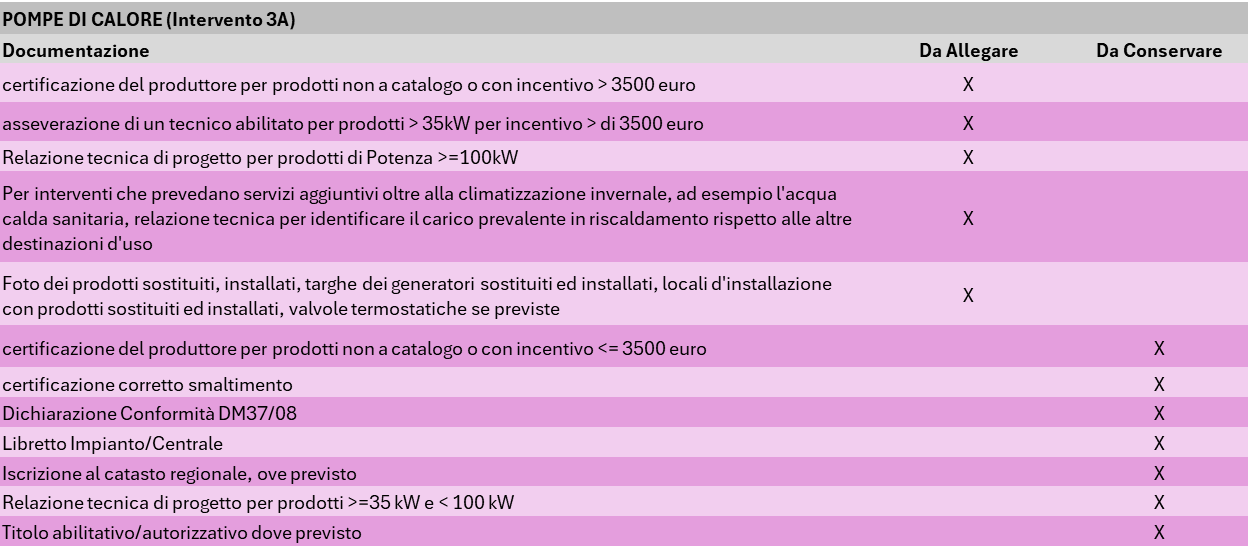 Di seguito tabellata un'estratto della documentazione, da allegare oda conservare, per la richiesta dell'incentivo. La tematica può essere approfondita consultando le regole applicative e relative FAQ del GSE