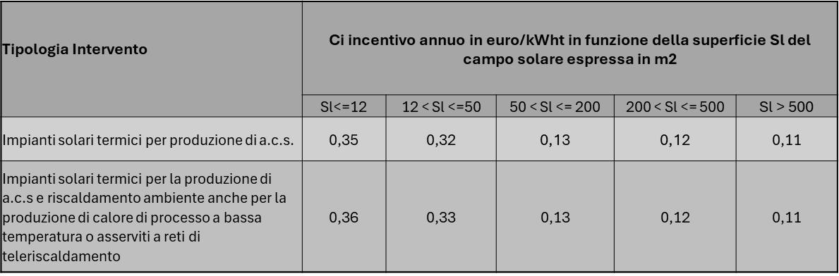 Ia tot: incentivo totale annuo (da moltiplicare per le annualità definite a decreto, 2 per Prated <=35kW, 5 per quelle > 35kW)